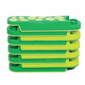 Set de 6 piezas. Fabricado en termoplástico semi-suave, antideslizante. Formas diferentes: redonda, cuadrada, rombo, triángulo y hexágono.