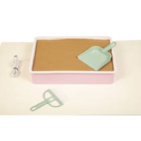 Incluye saco de arena, recogedor, cepillo y vaso dosificador.