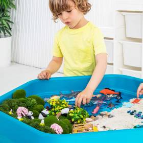 La bandeja hexagonal Tuff Tray con soporte metálico ajustable ofrece una configuración versátil para juegos sensoriales y actividades creativas. Su resistente bandeja es perfecta para agua, arena y más, mientras que el soporte ajustable en altura garantiza estabilidad y un uso ergonómico. Una solución práctica para el aprendizaje interactivo y la exploración imaginativa.