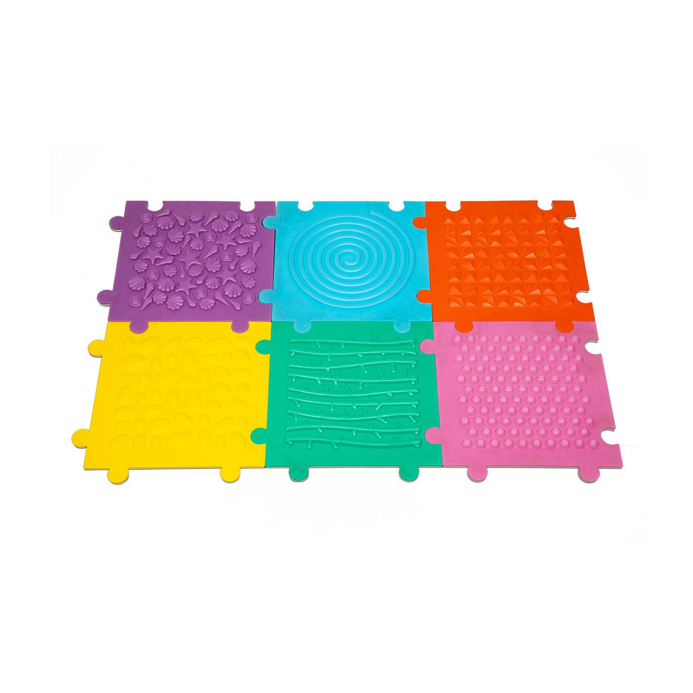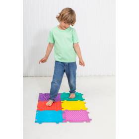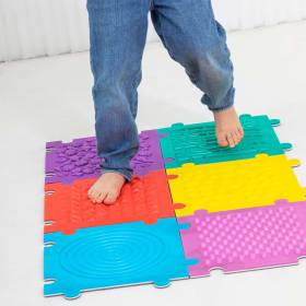 Crea un espacio sensorial único con este set de 6 baldosas texturizadas, diseñadas para actividades sensoriales y aulas. Estas baldosas encajan como un puzzle, formando un suelo interactivo perfecto para caminar, estar de pie y explorar diversas texturas.