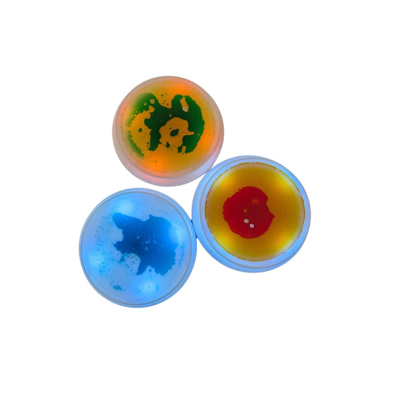 ✔ 3 bases redondas con líquidos de diferentes colores