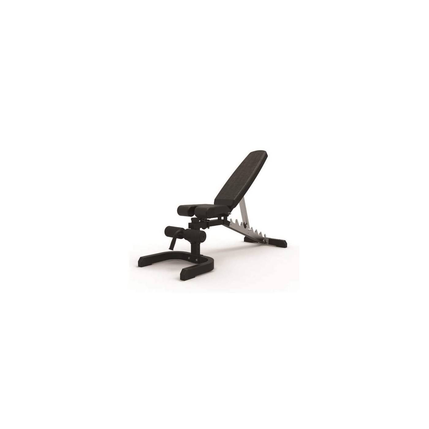 Banco funcional ajustable con múltiples posiciones de entrenamiento. Fabricado en acero y con acolchado de espuma cómodo. Puedes incluir accesorios como el Arm curl y el Leg extension.