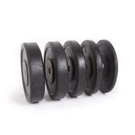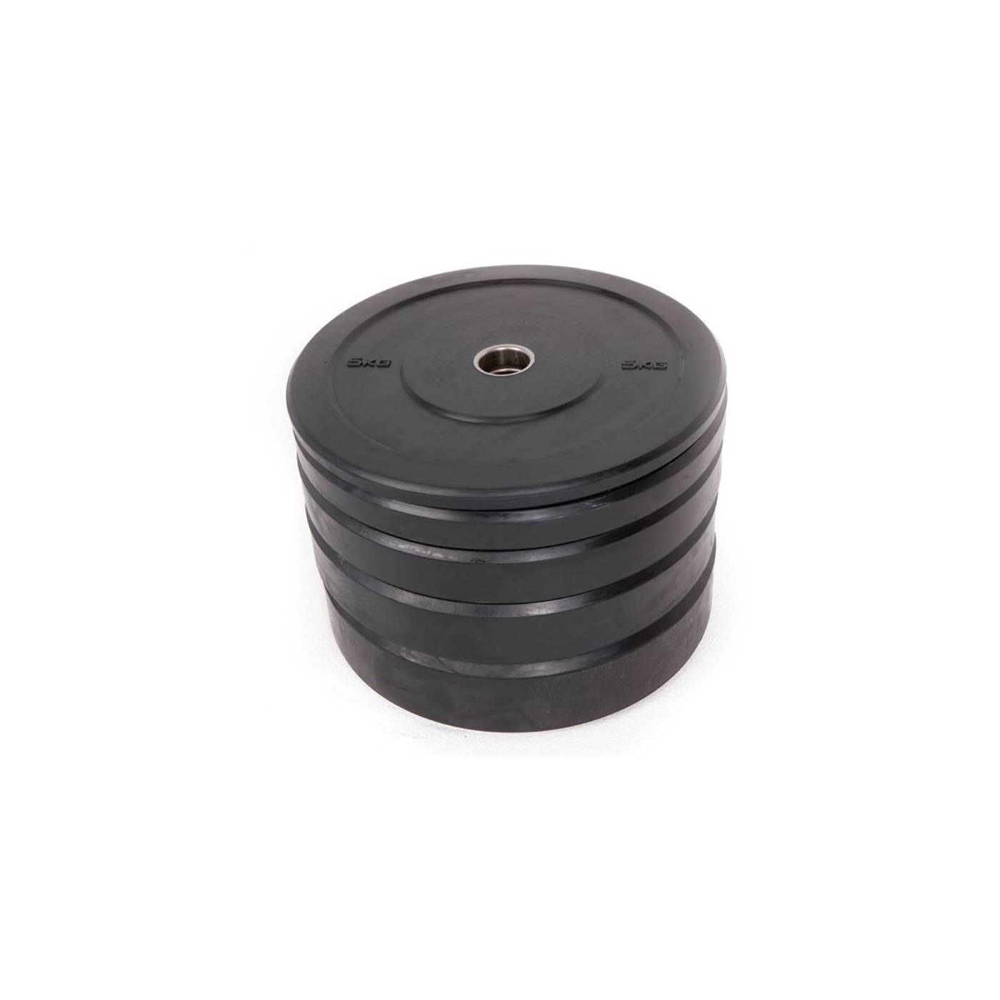Gracias a su recubrimiento de goma, los discos Bumper son mucho más silenciosos que los discos metálicos tradicionales, tanto al manipularlos como al dejarlos caer. Se venden por unidad y están disponibles en varios pesos: 5, 10, 15, 20 y 25 kg.