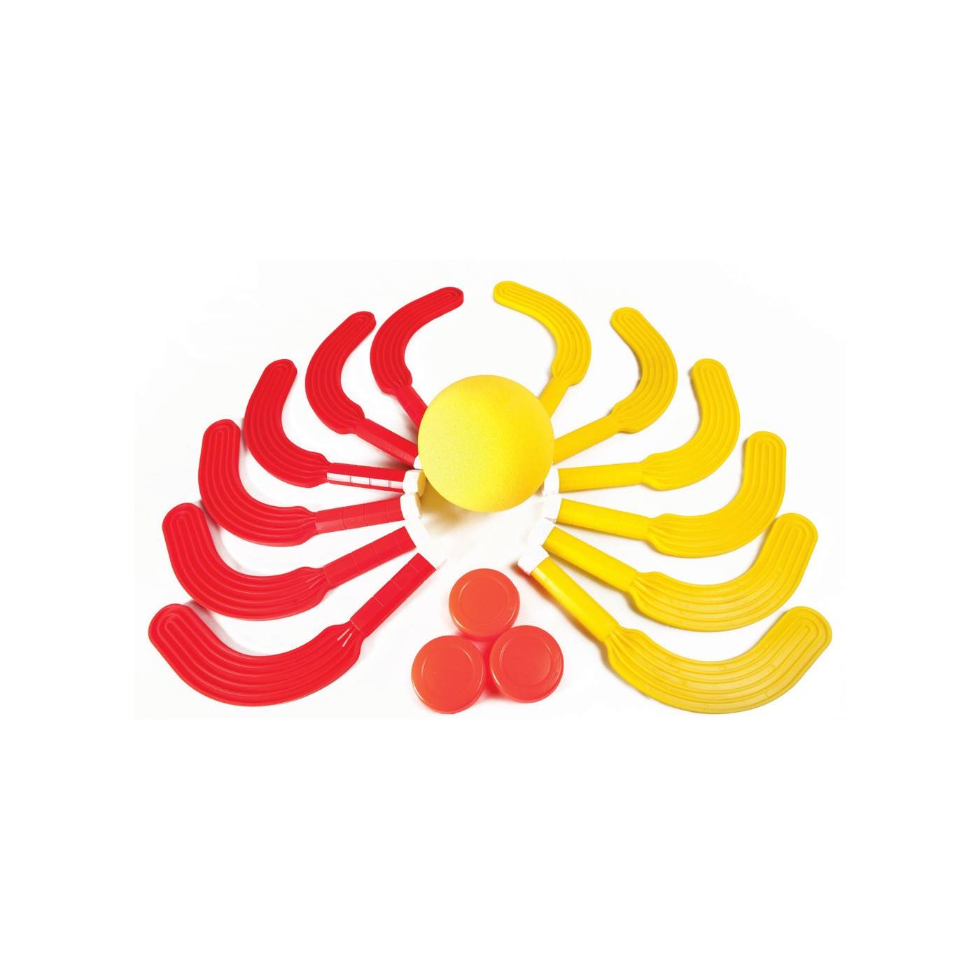 Set mini-hockey. set de 12 palas, una pelota y unapastilla.